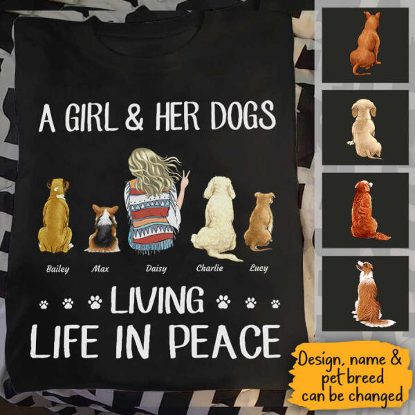 "A girl and her dogs/cats living life in peace" girl and dog, cat personalized T-Shirt