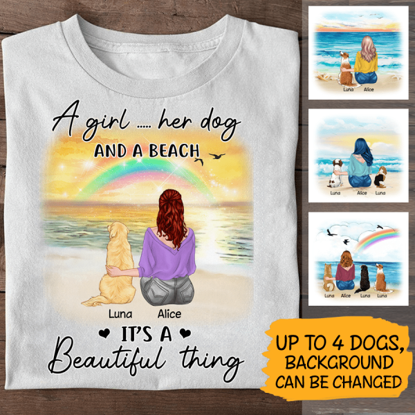 A girl, her dog and a beach Personalized Dog T-Shirt TS-TU215