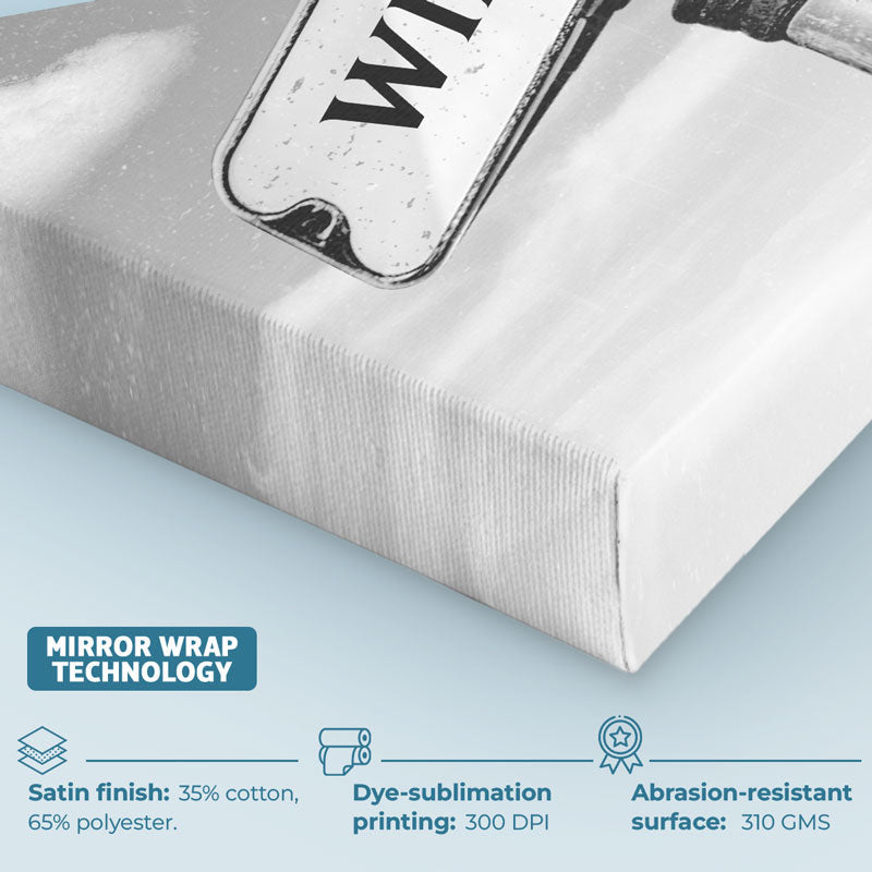 Feature: Ready to hang, full gallery wrapped and framed canvas, 0.75" depth for a premium look appearance, and proudly printed in the USA.