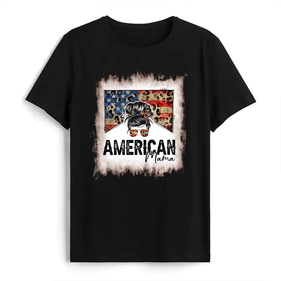 American Mama - Personalized T-Shirt, 4th Of July Messy Bun T-Shirt