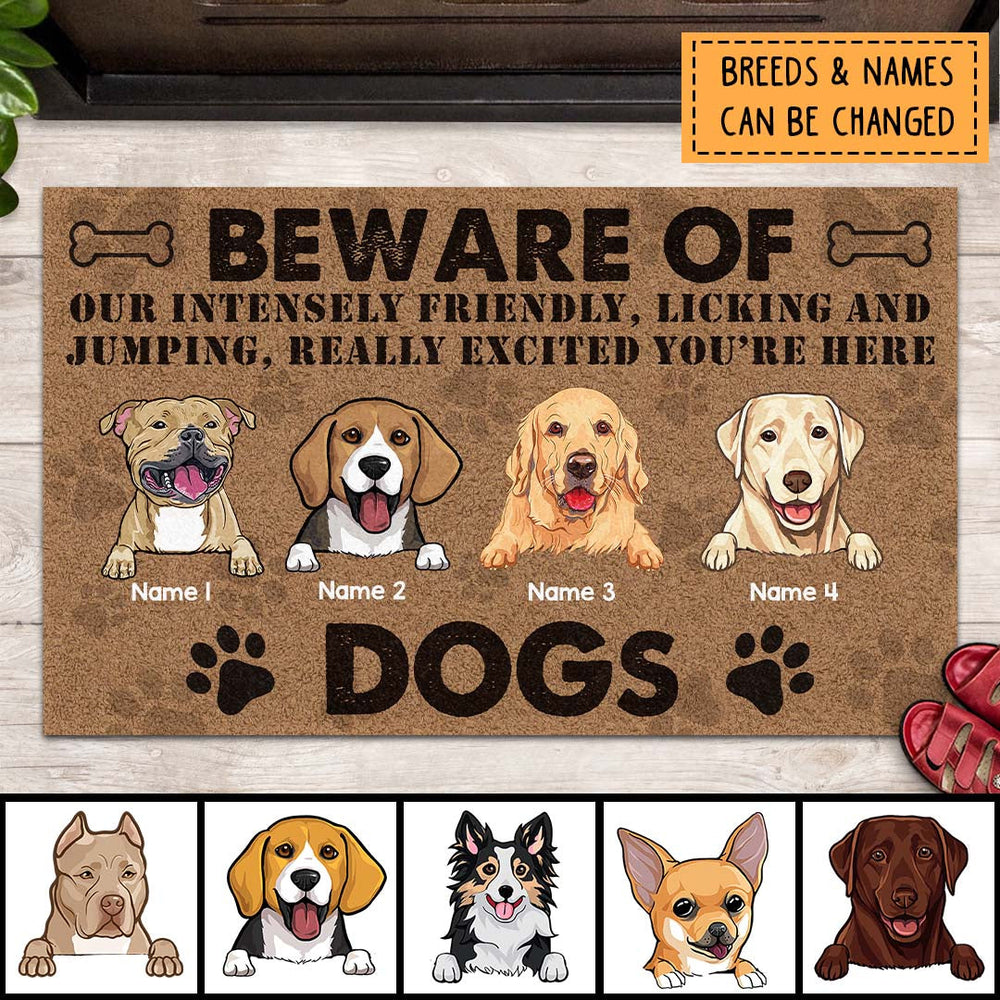 Beware Of Dogs Our Intensely Friendly, Cute Warning Doormat, Personalized Dog Breeds Doormat