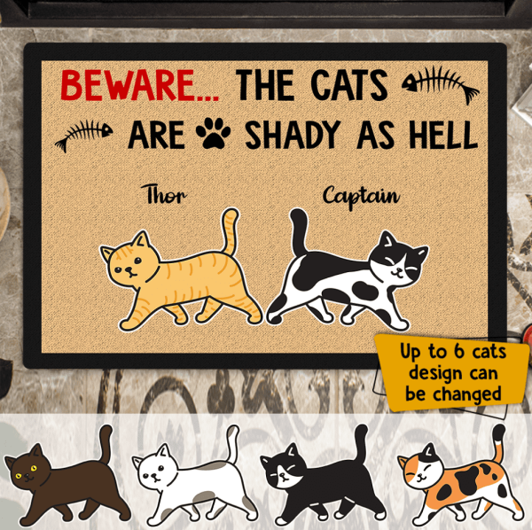 Beware Of Shady Cats Funny Personalized Doormat DM-HR08