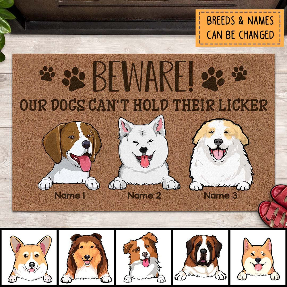 Beware Our Dogs Can't Hold Their Licker, Personalized Dog Breeds Doormat, Funny Home Decor