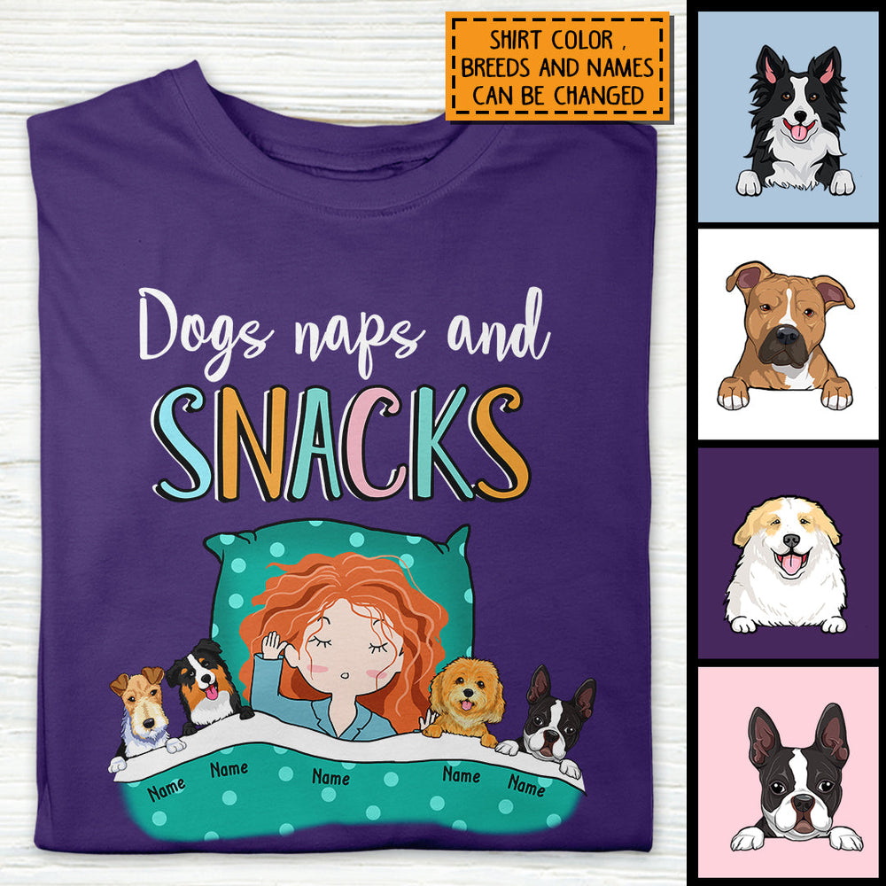 Dogs Naps And Snack, Girl And Dogs, Personalized Dog Breeds T-shirt, Gifts For Dog Lovers