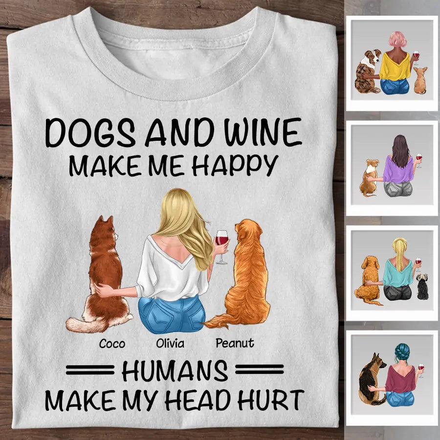 Dogs & Wine Make Me Happy Human Make My Head Hurt Personalized T-shirt TS-NB2268