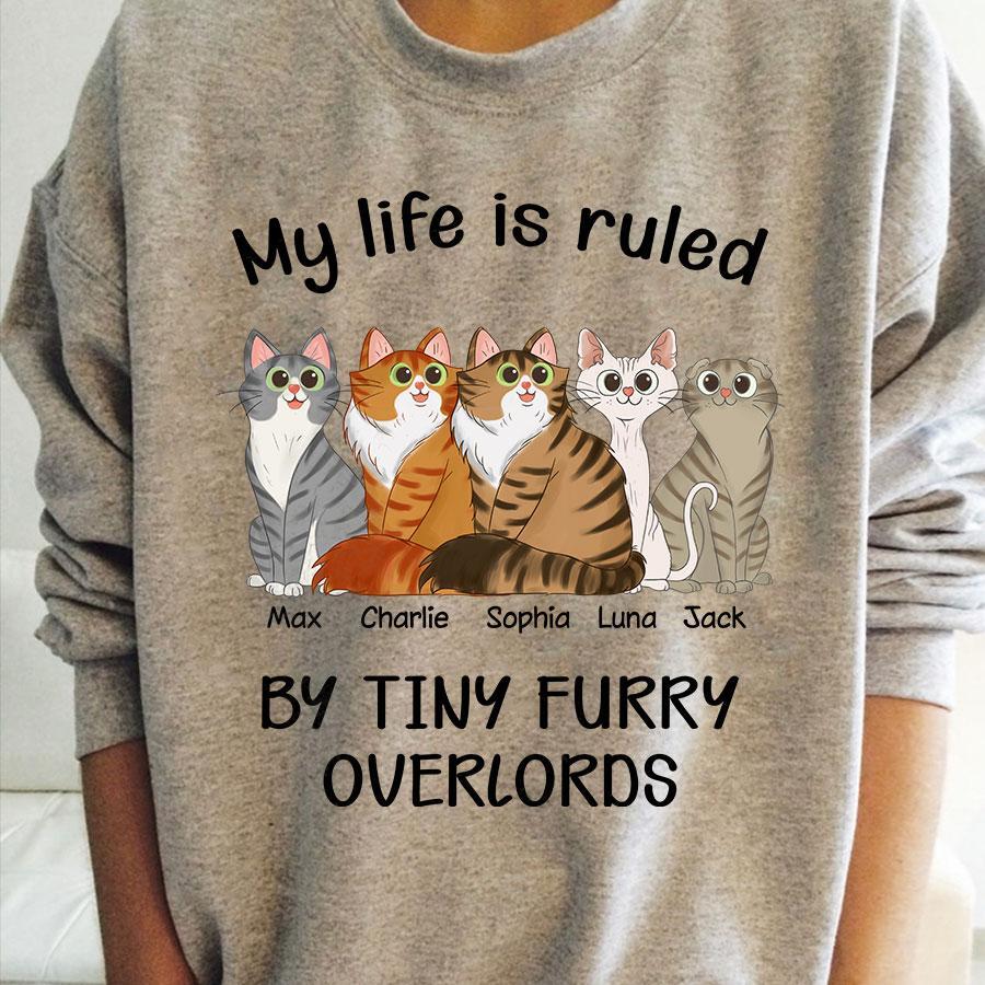 Funny My Life Is Ruled By Tiny Furry Overlords Personalized Cat T-Shirt TS-PT1225
