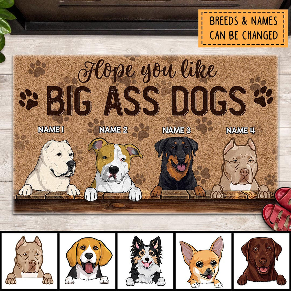 Hope You Like Big Ass Dogs, Pawprints Doormat, Personalized Dog Breeds Doormat, Gifts For Dog Lovers