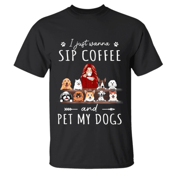 I Just Wanna Sip Coffee And Pet My Dogs/Cats personalized pet T-Shirt