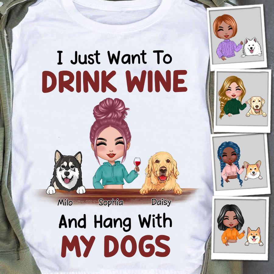 I Just Want To Drink Wine And Hang With My Dog Personalized T-shirt TS-NB1687