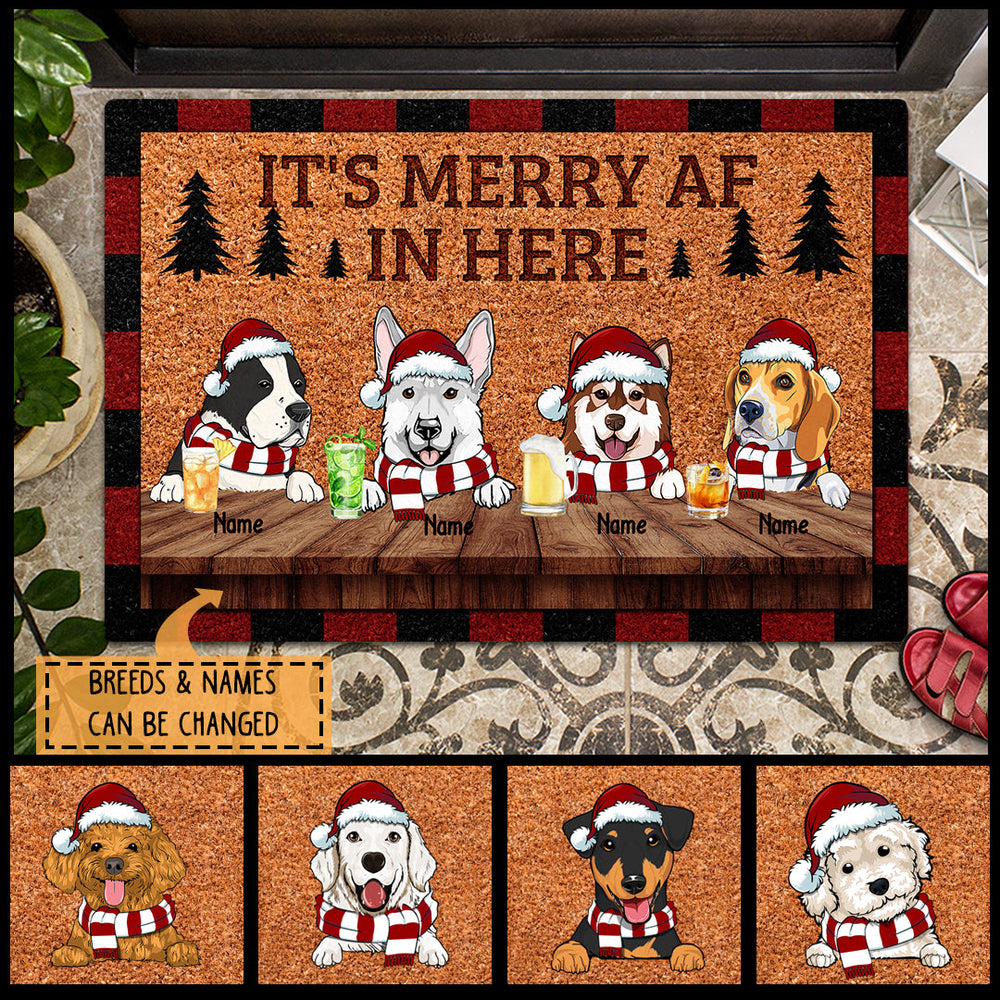 It's Merry Af In Here, Pine Tree, Personalized Christmas Dog Breeds Doormat, Christmas House Decor