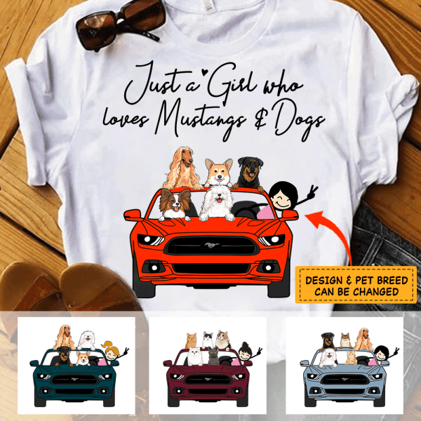 Just A Girl Who Loves Mustangs and Dogs/ Cats girl and dog, cat personalized T-Shirt TS-HR91