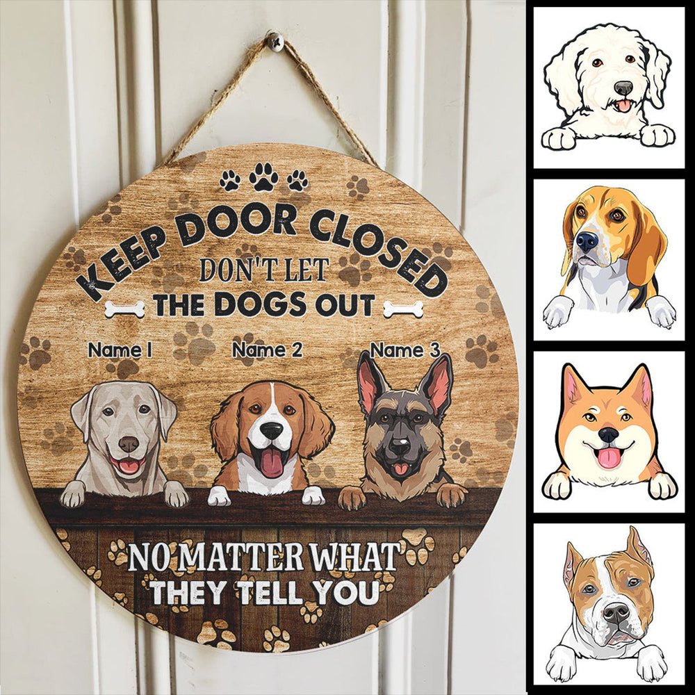 Keep Door Closed, Don't Let The Dogs Out, Dog Pawprints Background, Personalized Dog Lovers Door Sign