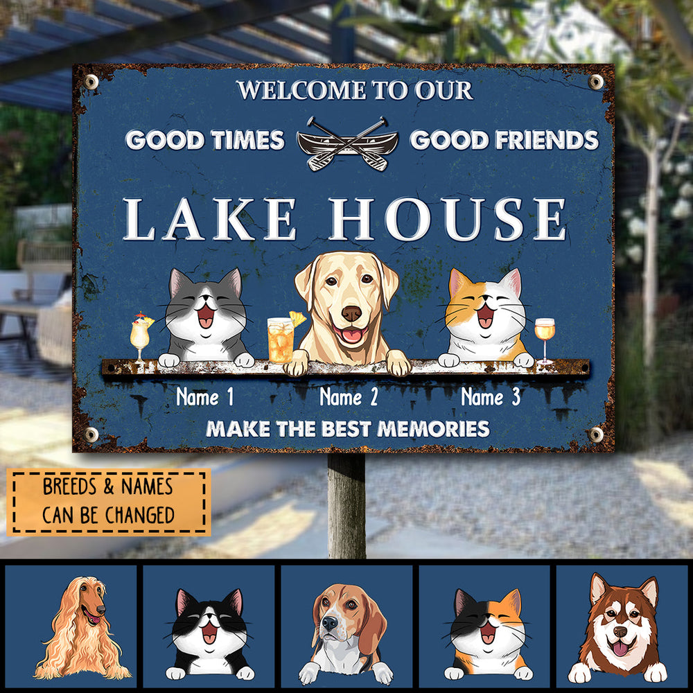 Metal Lake House Sign, Gifts For Pet Lovers, Good Times Good Friends Make The Best Memories Blue Welcome Signs