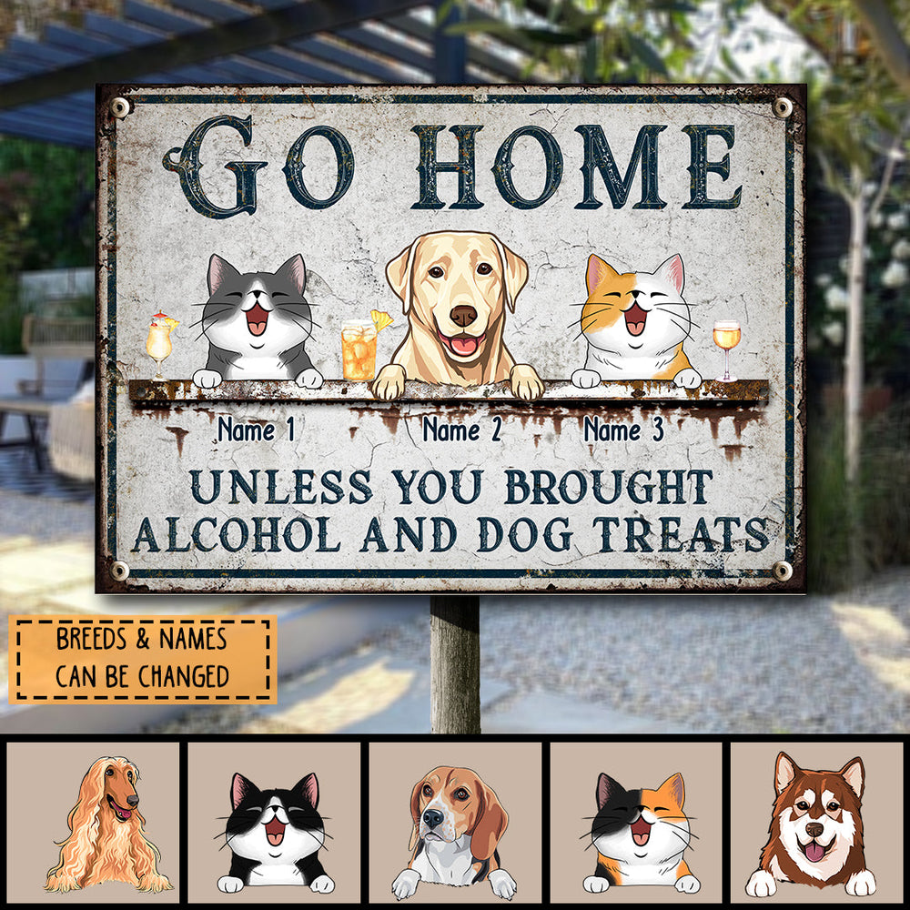 Metal Yard Sign, Gifts For Pet Lovers, Go Home Unless You Brought Alcohol & Dog Treats Vintage Signs