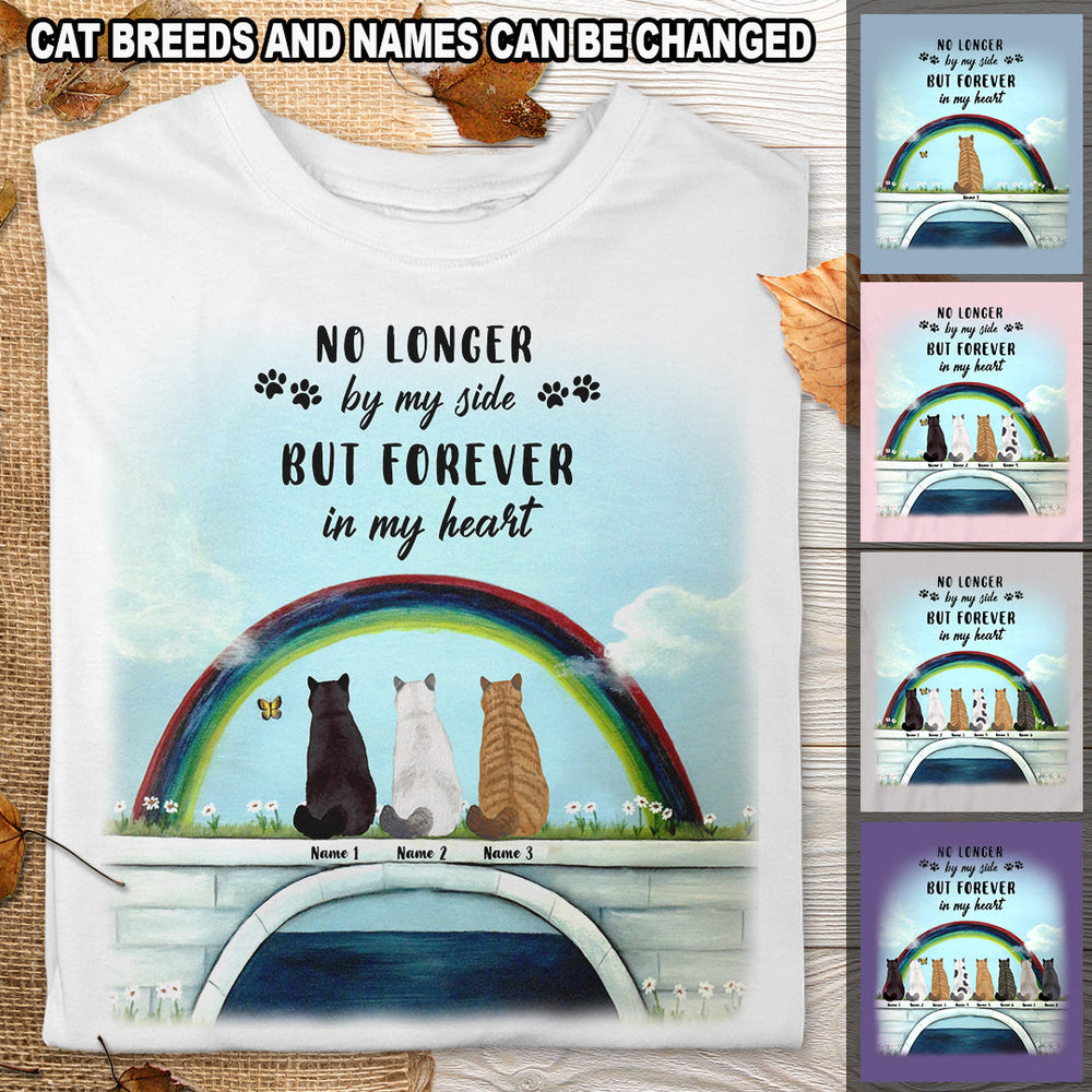 No Longer By My Side But Forever In My Heart - Rainbow And Bridge - Personalized Cat T-shirt