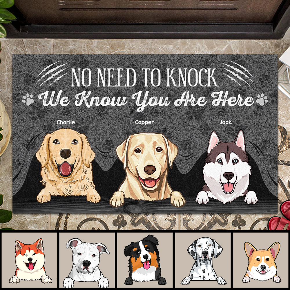 No Need To Knock Custom Doormat, Gifts For Dog Lovers, I Know You Are Here Gray Front Door Mat