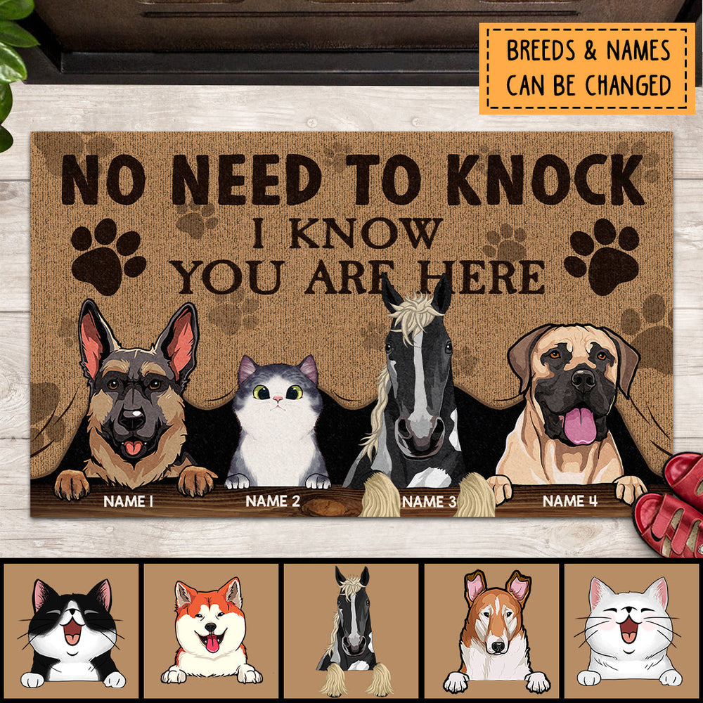 Available Product: No Need To Knock We Know You Are Here, Pet Peeking From Curtain, Personalized Dog & Cat & Horse Doormat, Home Decor--GM Doormat