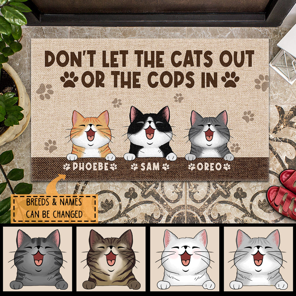 Personalized Cat Breeds Doormat, Gifts For Cat Lovers, Don't Let The Cats Out Or The Cops In Funny Warning Doormat