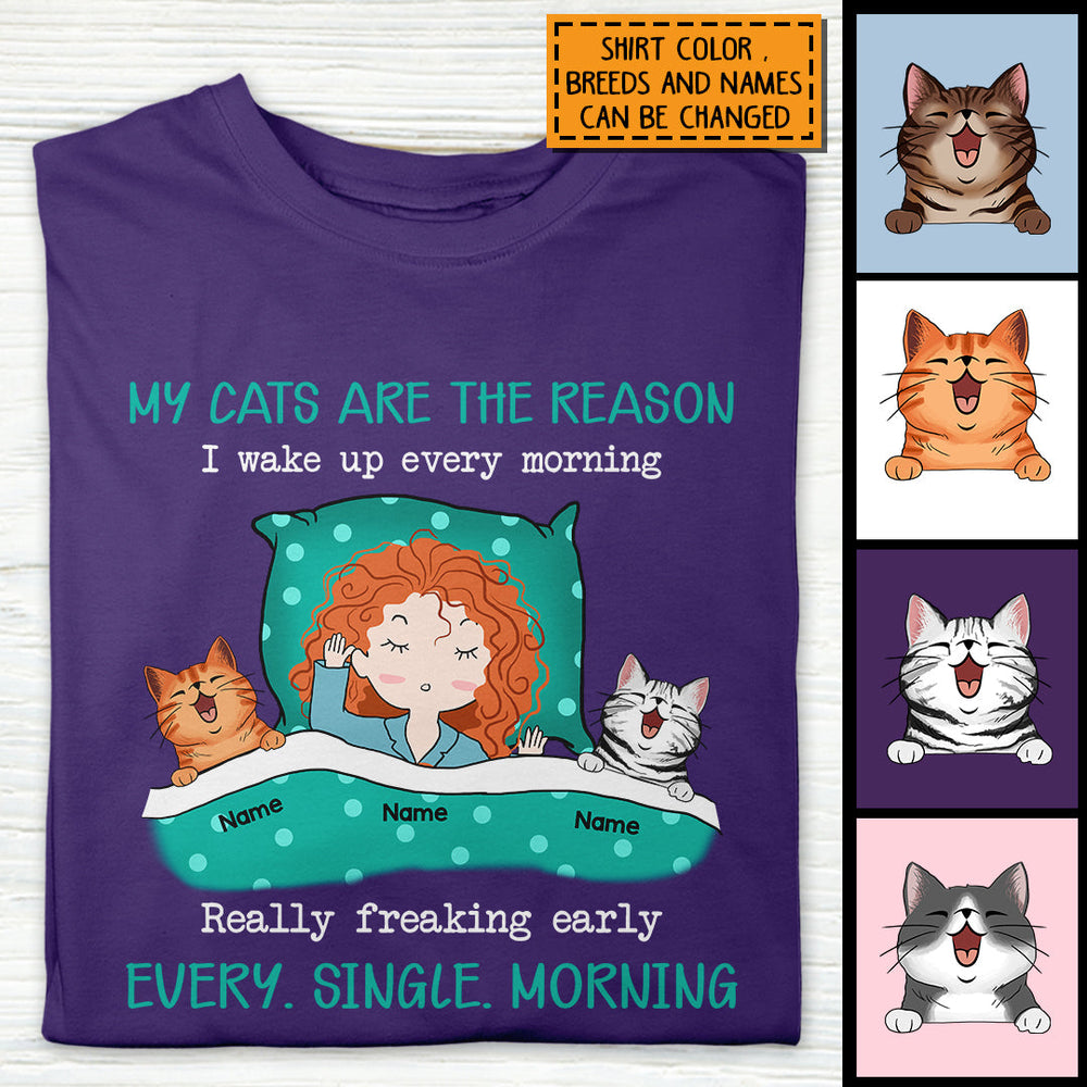 Personalized Cat Breeds T-shirt, Gifts For Cat Moms, My Cats Are The Reason I Wake Up Every Morning