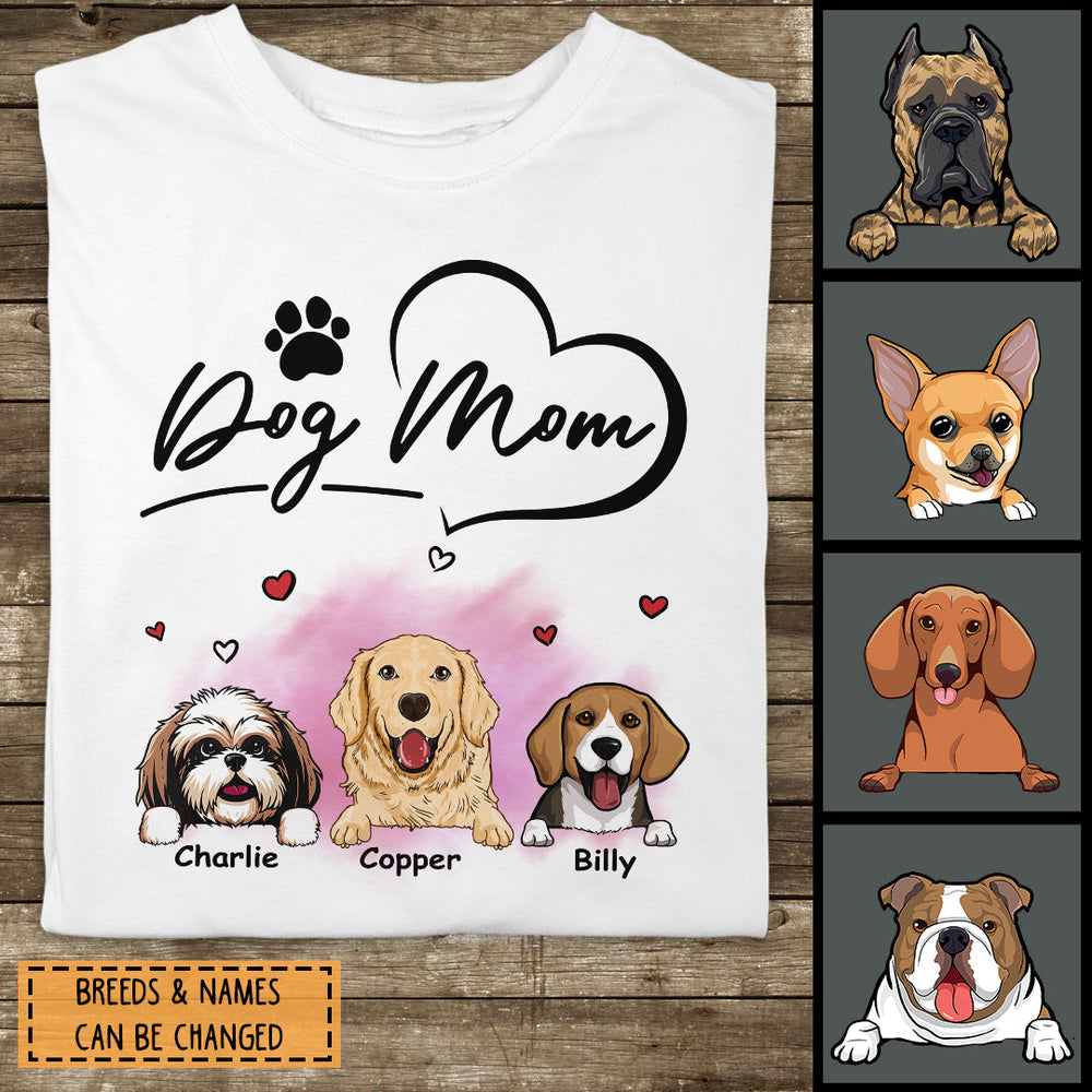 Personalized Dog Breeds T-shirt, Gifts For Dog Moms, Dog Mom & Heart T-shirt, Gifts For Mother's Day