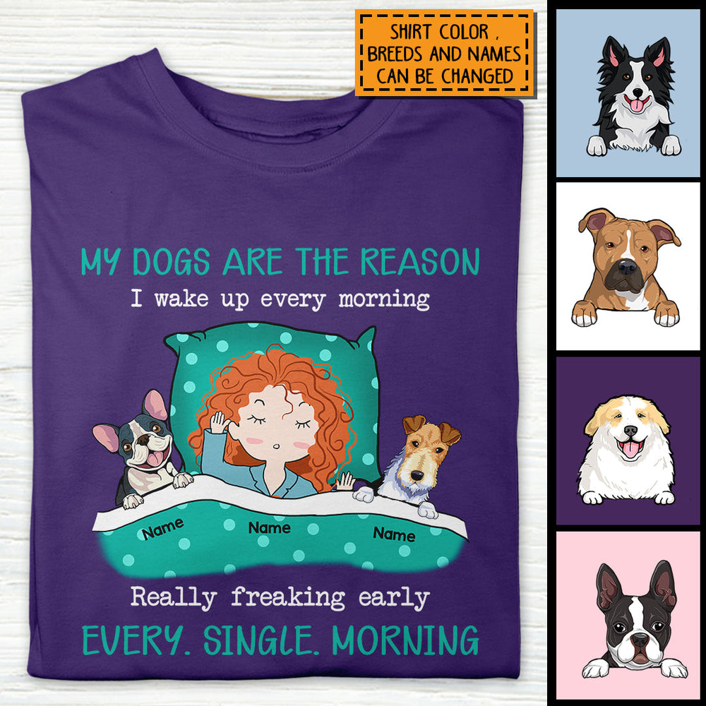 Personalized Dog Breeds T-shirt, Gifts For Dog Moms, My Dogs Are The Reason I Wake Up Every Morning