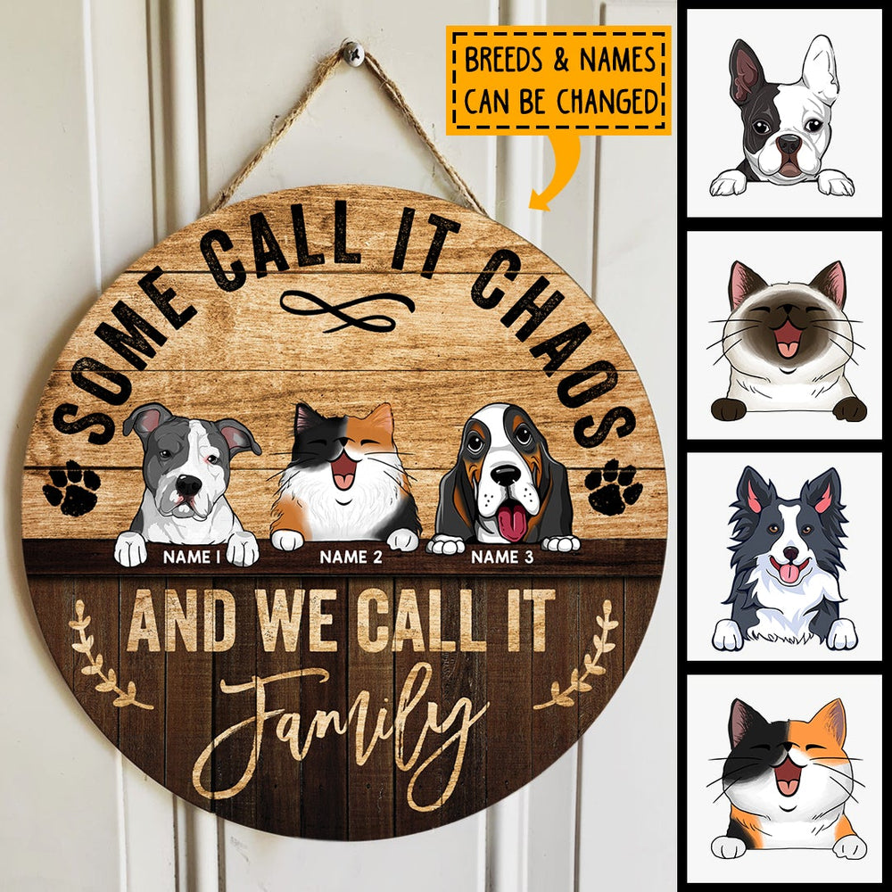 Some Call It Chaos And We Call It Family, Rustic Wooden Door Hanger, Personalized Dog & Cat Door Sign