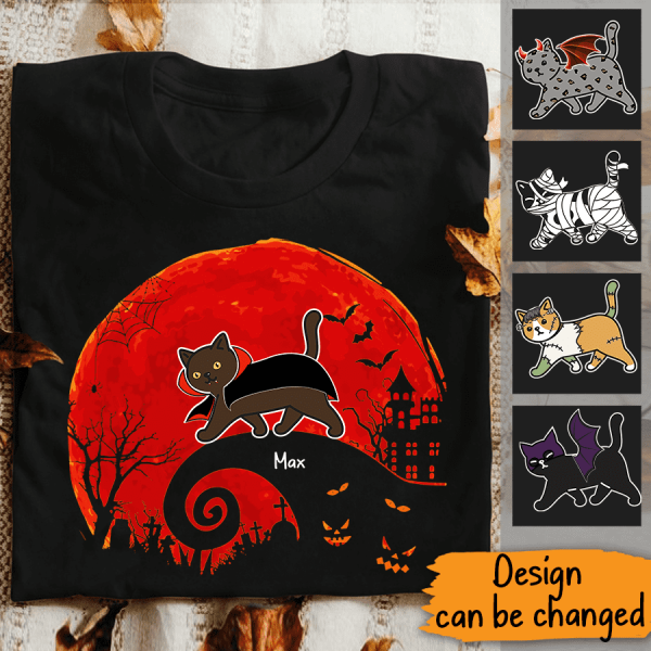Spooky Cat And Halloween Moon Personalized T-Shirt TS-HR209
