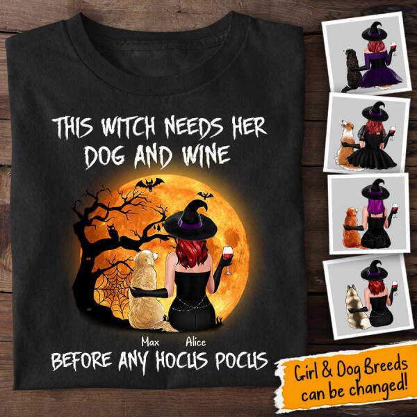 This Witch Needs Her Dog And Wine Personalized T-shirt TS-NB45