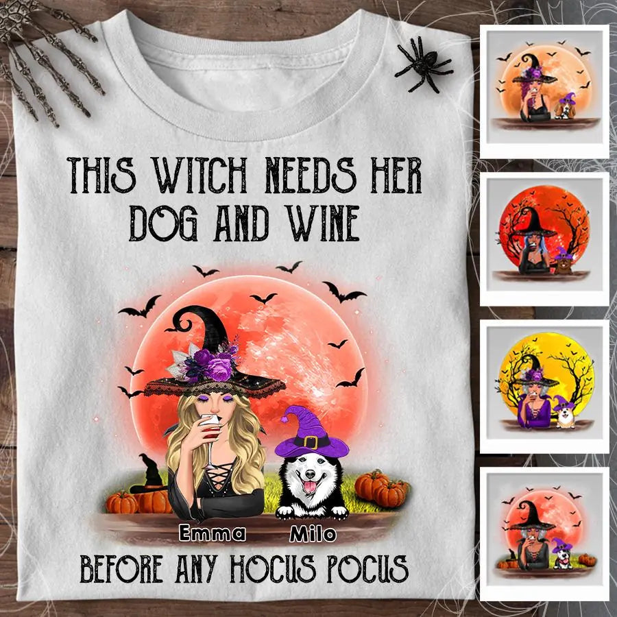 This Witch Needs Her Dog & Wine Before Any Hocus Pocus Personalized T-shirt TS-NB1748