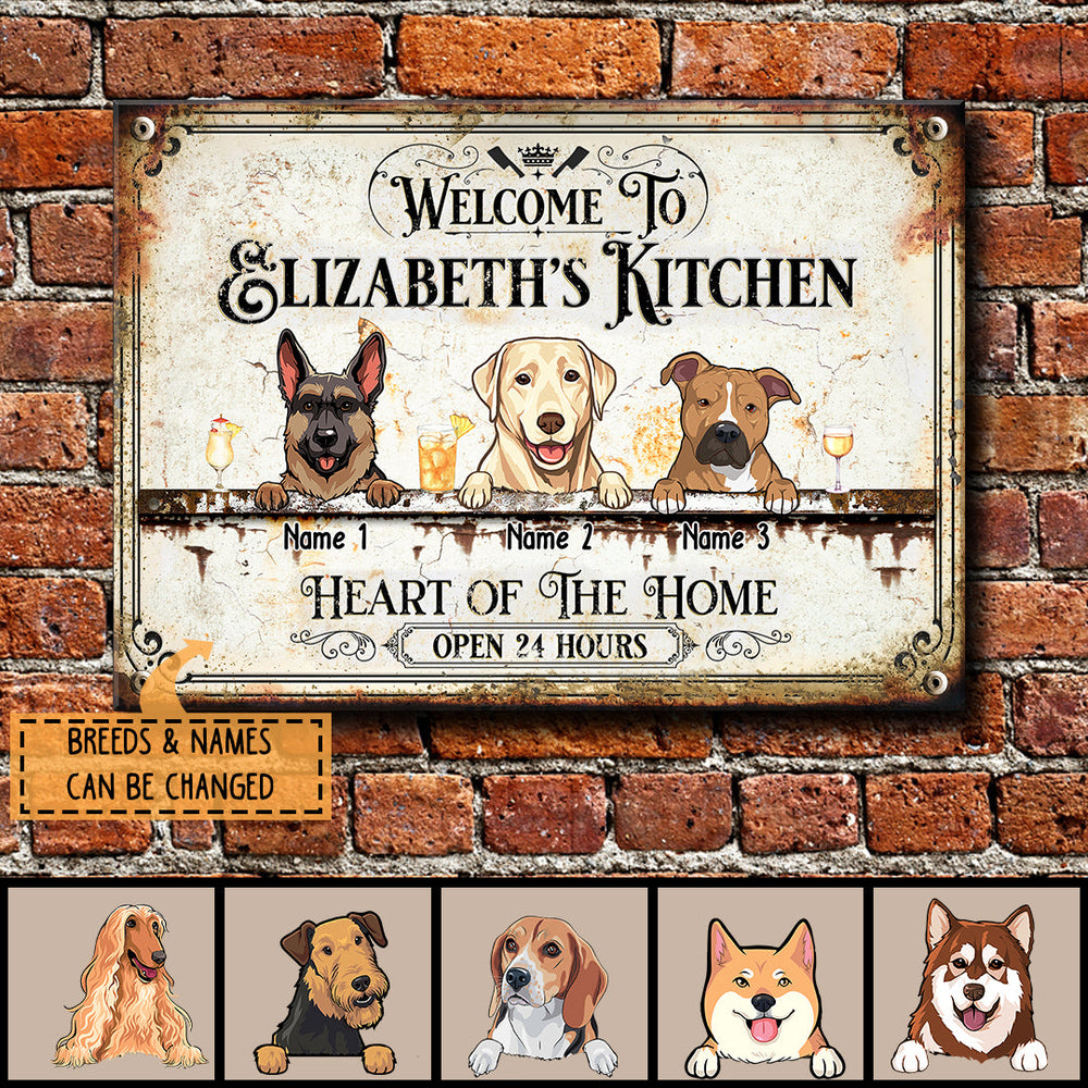 Welcome To My Kitchen Heart Of The Home, Welcome Sign, Personalized Dog Breeds Metal Sign, Kitchen Decor