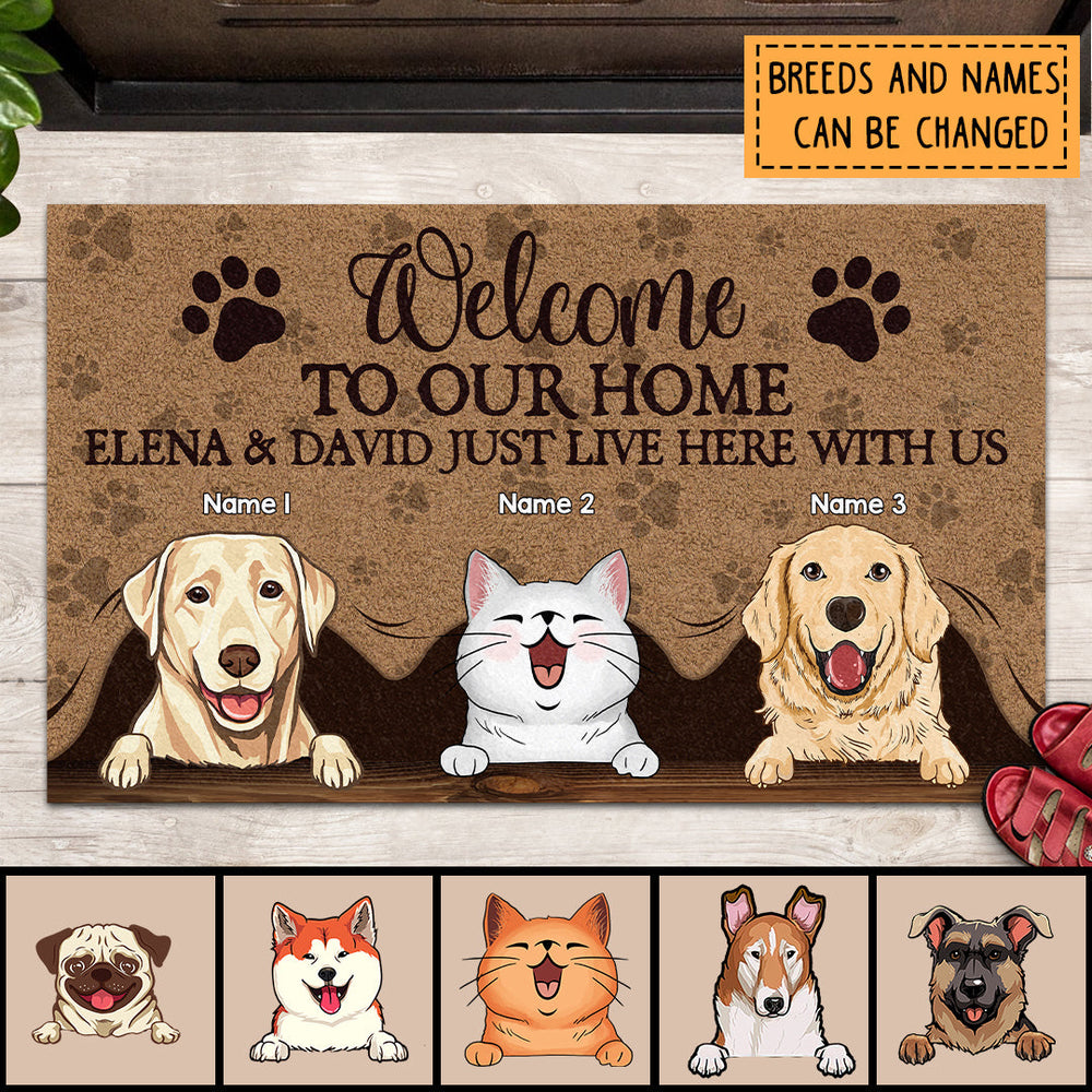 Welcome To Our Home, Gift For Pet Lovers, Funny Welcome Mat, Housewarming Gift, Personalized Dog & Cat Doormat