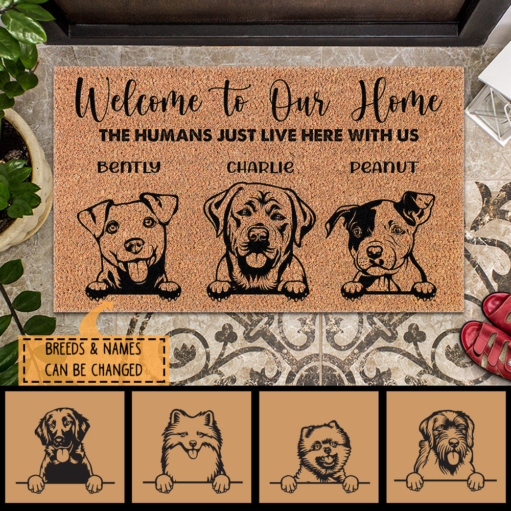 Welcome To Our Home Personalized Dog Breeds Doormat, Gifts For Dog Lovers, The Humans Just Live Here With Us Home Decor