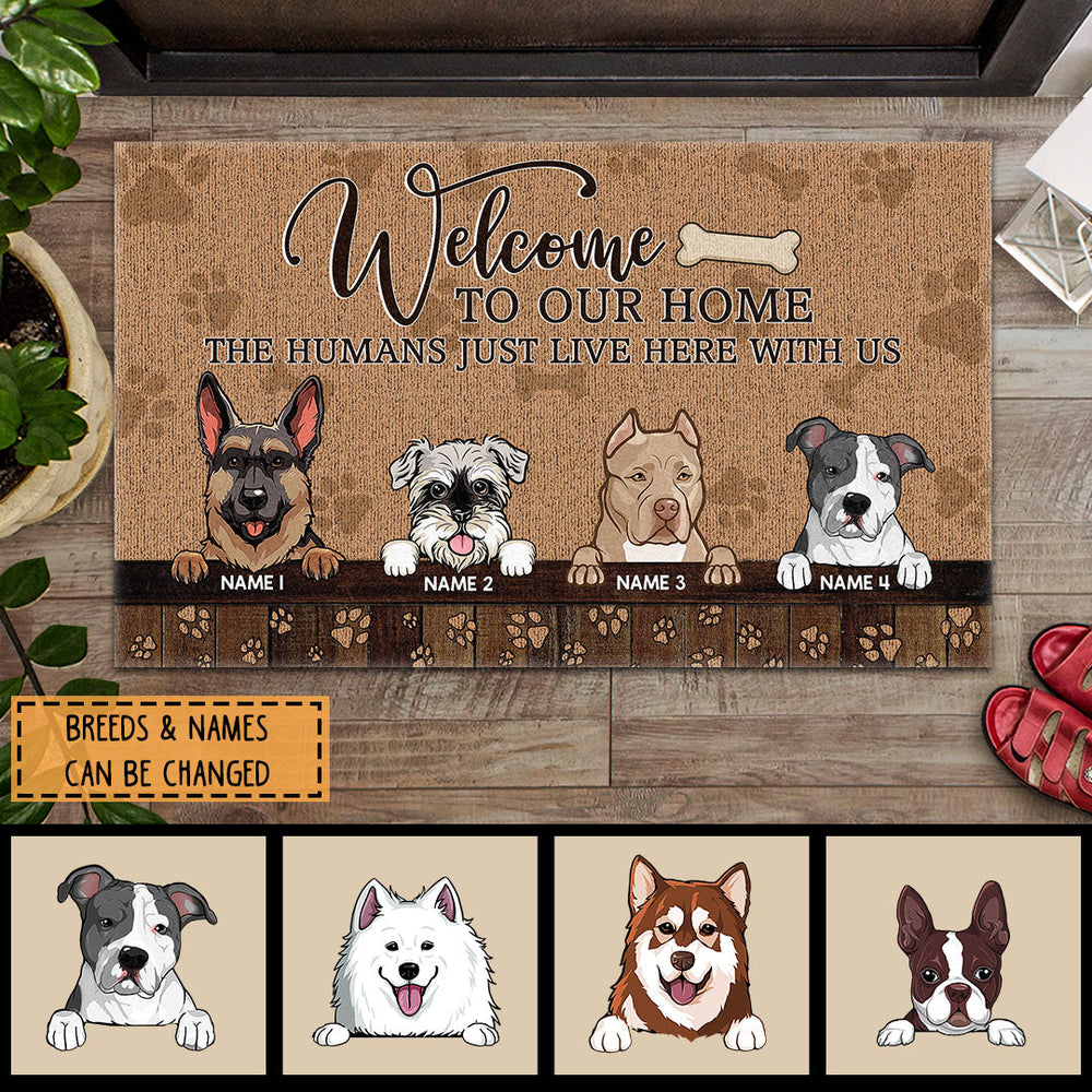 Welcome To Our Home, The Humans Just Live Here With Us, Dog Paw Sign, Housewarming Gift, Home Decor, Personalized Dog Lovers Doormat