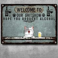 Welcome To Our Shitshow Hope You Brought Alcohol, Pet & Beverage Sign, Personalized Dog & Cat Metal Sign