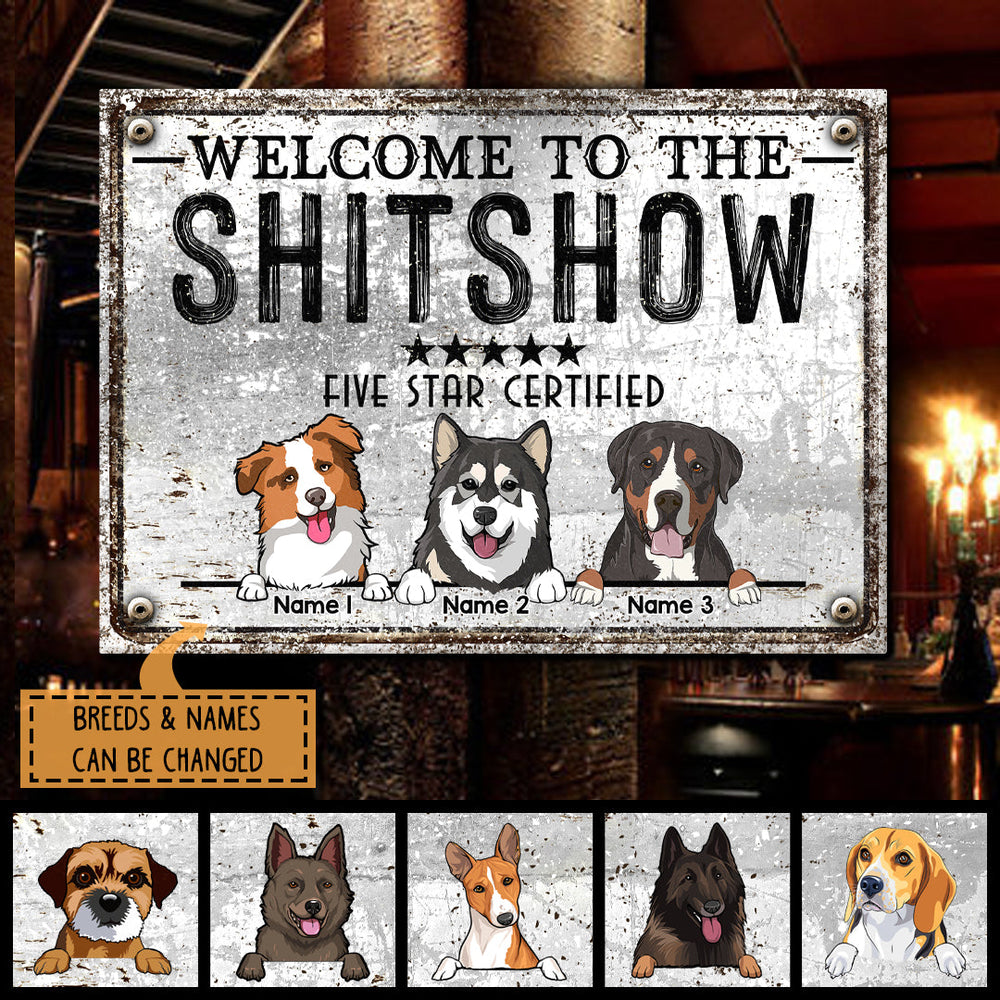 Welcome To The Shitshow, Five Star Certified Sign, Personalized Dog Breeds Metal Sign, Outdoor Decor