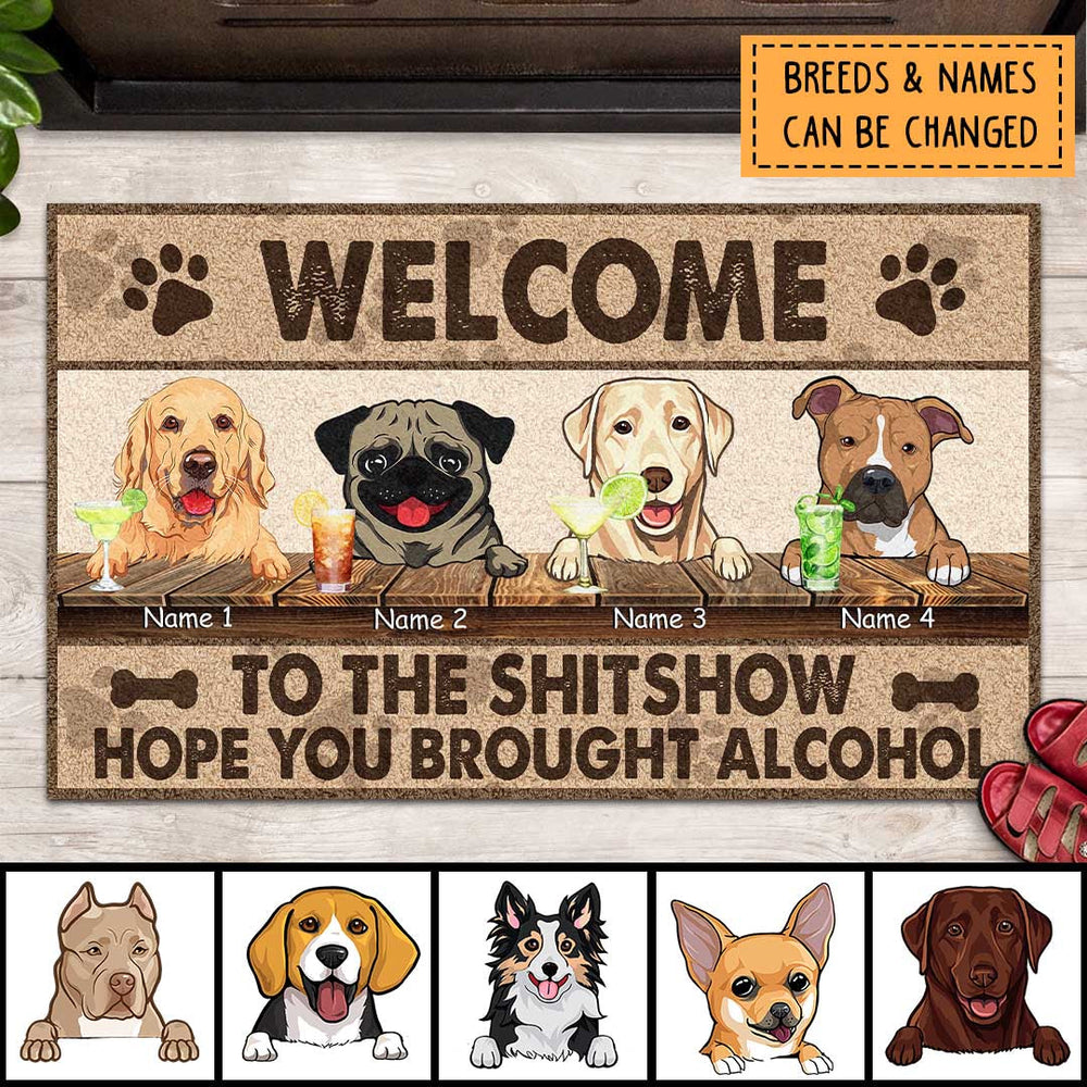 Welcome To The Shitshow Hope You Brought Alcohol, Dog & Beverage, Personalized Dog Breeds Doormat, Dog Lovers Gifts