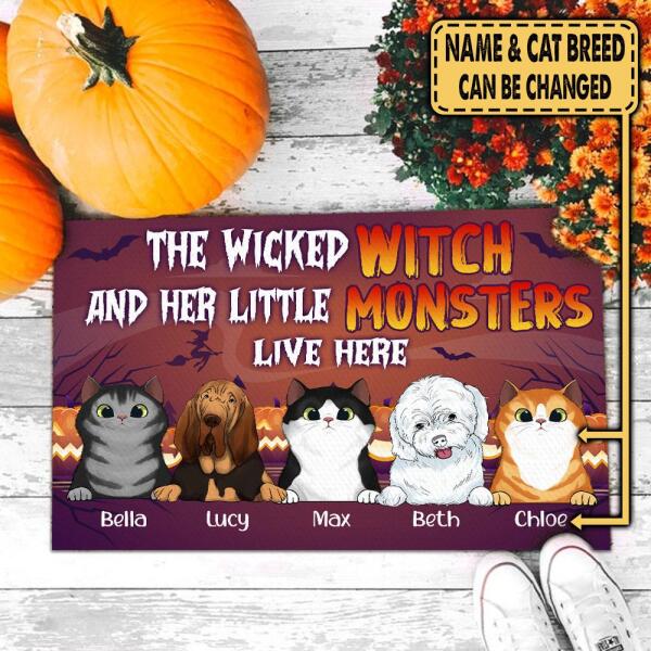 Wicked Witch And Monster Cat/Dog Live Here Halloween - Personalized Doormat